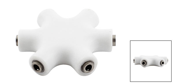 Snowflake Designed 6Way 3.5mm Female Spliter Audio Plug Earphone Adapter White