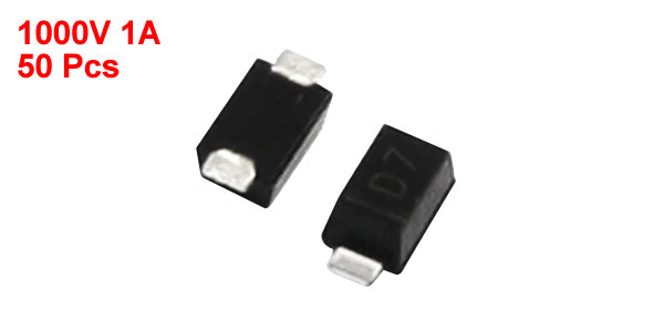 Product Name Rectifier Diode Model D7 Package Type SOD-123FL Max Repetitive Peak Reverse Voltage 1000V Max Average Forward Rectified Current 1A Size 3.7 x 1.8 x 1.3mm / 0.15" x 0.07" x 0.04" (L*W*T) Color Silver Tone, Black Weight 3g Package Content 50 (±2%) x Rectifier Diode - Reviews
