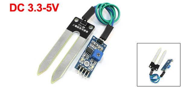 Product Name Soil Humidity Detection Sensor Module Working Voltage DC 3.3-5V Chip LM393 PCB Board Size 3.3 x 1.4 x 0.8cm/1.3" x 0.55" x 0.315"(L*W*T) Cable Length 18cm/7" Soil Sensor Size 6 x 2cm/2.4" x 0.78"(L*W) Materials Plastic, Metal Main Color Blue, Black Net Weight 8g Package Content 1 x Soil Humidity Detection Sensor Module