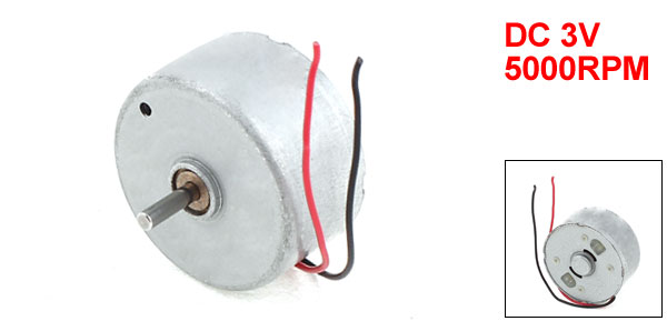 Product Name Micro DC Motor Model RF300 Rated Voltage DC 3V Speed 5000RPM Shaft Size 7 x 2mm/ 0.28" x 0.08"(L*D) Body Size 24 x 12.5mm/ 0.94" x 0.49"(D*H) Total Height 21.5mm/ 0.85" Wire Length 5cm/ 2" Main Color Silver Tone Material Metal Weight 22g Package 1 x Micro DC Motor - Reviews