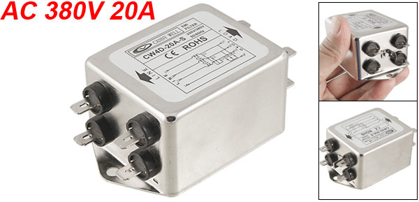 Product Name Power Line EMI Filter Model No. JR-S220-R Rated Voltage AC 380V, 50/60Hz Rated Current 20A Working Temperature -25°C--+85°C Base Hole Diameter 4.6mm/0.181" Base Holes Pitch 75.2mm/2.96" Ternimals Width(Approx) 6.3mm/0.248" Overall Size(Approx) 89 x 52 x 38mm/3.5" x 2.0" x 1.5"(L*W*T) External Material Metal Color Silver Tone Net Weight 225g Package Content 1 x Power Line EMI Filter - Reviews