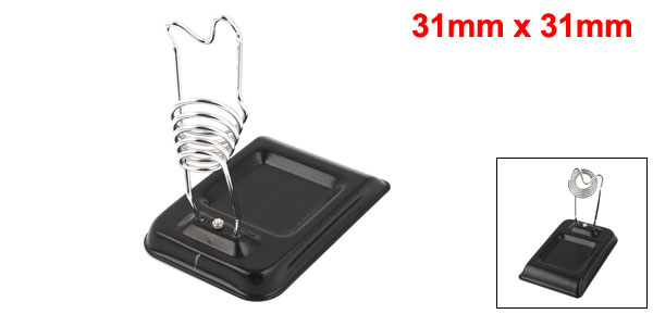 Product Name Soldering Iron Holder Material Metal Color Black, Silver Tone Base Size 123 x 86 x 21mm/ 4.8" x 3.4" x 0.8"(L*W*H) Holder Size 95 x 67mm/ 3.7" x 2.6"(H*D) Spring Circle Size 31 x 31mm/ 1.2" x 1.2"(L*Max.OD) Net Weight 184g Package Content 1 x Soldering Iron Holder