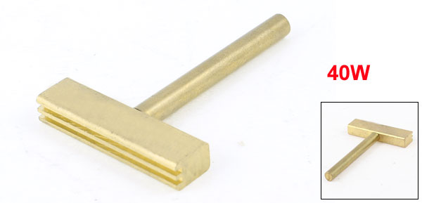 Product Name Soldering Iron Tip Type 40W Material Metal Design T Shape Size 51 x 34 x 6mm/2" x 1.3" x 0.24"(L*W*T) Color Gold Tone Weight 21g Package Content 1 x Soldering Iron T-Tip Heads - Reviews