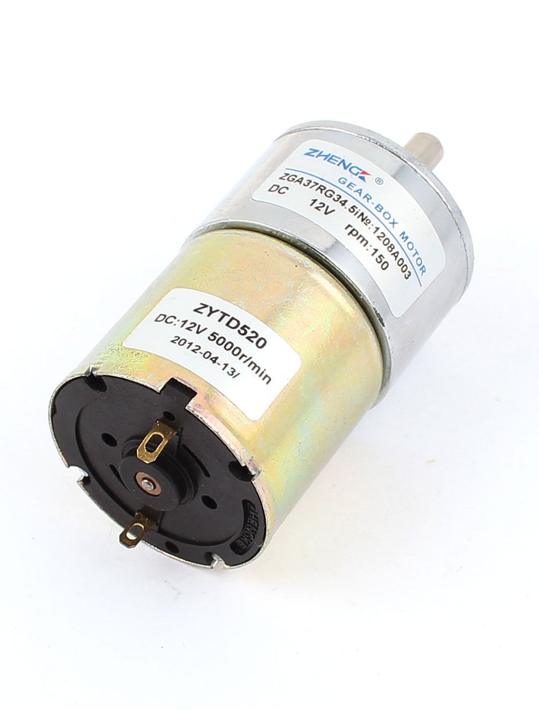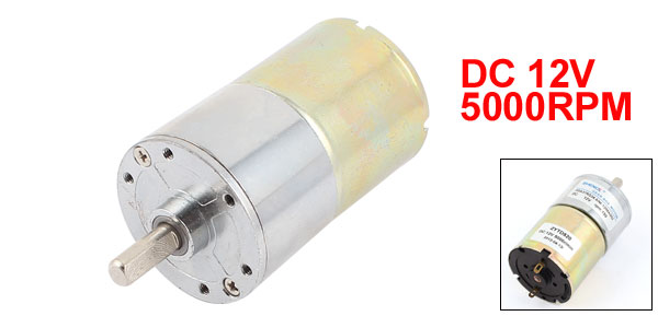 Shaft Diameter 6mm/ 0.24" Main Color Silver Tone, Bronze Tone Brand DMiotech Net Weight 187g Rated Voltage DC 12V Country of Manufacture CHINA Motor Speed 5000RPM Package Content 1 x DC Geared Motor Material Metal Total Size 37 x 78mm/ 1.5" x 3.1" (D*H) Gearbox Part Size 37 x 25mm/ 1.5" x 1"(D*H) Gearbox Speed 150rpm - Reviews