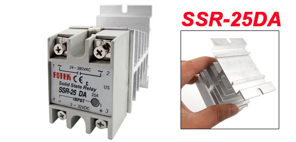 Solid State Relay SSR-25DA 25A DC-AC 3-32VDC/24-380VAC w Aluminum heat sink