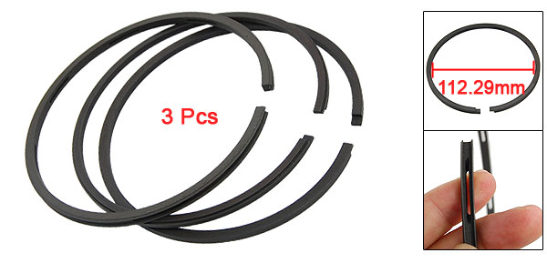 DetailsSpare Part 119.38mm Out Diameter Metal Piston Rings Set  Product Name Piston Ring Compatible for Air Compressor Including Balance Ring (2 Pcs) Seal Ring (1 Pcs) Inner Diameter 112.29mm / 4.42" Out Diameter 119.38mm / 4.7" Balance Ring Thickness 3.36mm / 0.132" Seal Ring Thickness 4.42mm / 0.174" Material Metal Color Black Weight 109g Package Content Piston Ring Set(3 Pcs)