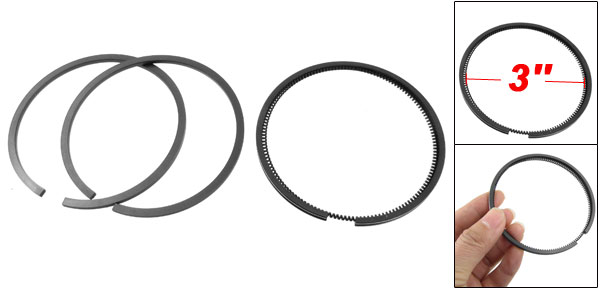 DetailsSpare Part 83mm Outside Dia Metal Piston Rings Set Black  Product Name Piston Ring Compatible for Air Compressor Including Balance Ring(2 Pcs) Seal Ring(1 Pcs) Inner Diameter 76mm/3'' Outside Diameter 83mm/3.3'' Balance Ring Thickness 2.5mm/0.1'' Seal Ring Thickness 3.5mm/0.14'' Material Metal Color Black Weight 43g Package Content Piston Ring Set(3 Pcs)