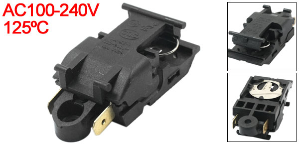 DetailsSpare Part Kettle Temperature Control Thermostat AC100-240V 13A 125C TM-XE-3  Product Name Kettle Thermostat Model No. TM-XE-3 Rated Voltage & Current AC100-240V 13A Operating Temperature 125ºC Pin Number 2 Hole Size 3mm/0.12" Total Size 46 x 21 x 15mm/1.7"x 0.83" x 0.6"(L*W*H) Materials Plastic, Metal Color Black, Gold Tone Weight 8g Package Content 1 x Kettle Thermostat