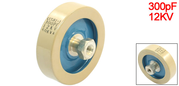 Product Name HV Ceramic Capacitor Model CCG81 Withstand Voltage 12KV Capacitance 300pF Power 60KVA Capacitance Tolerance ±5% Thread Size 34 x 5.1mm / 1.3" x 0.2"(Depth*D) Dimension 60 x 34mm /2.4" x 1.3"(D*T) Material Ceramic, Brass Color Beige, Blue Weight 150g Package Content 1x HV Capacitor - Reviews