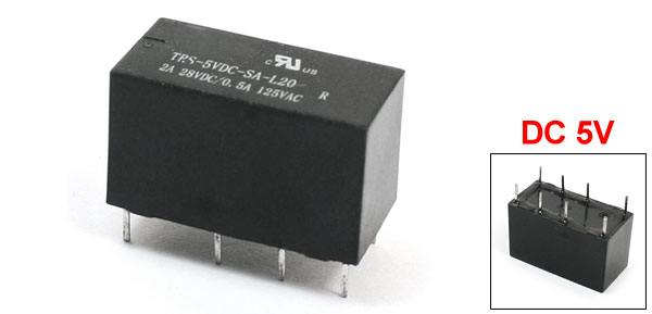 2A 28VDCContact Type DPDT Terminal Number 8 Size (Approx.) 20 x 11.5 x 9.6mm / 0.78" x 0.45" x 0.37" (L * W * T) Material Plastic Color Black Weight 3g Package Content 1x Relay - Reviews