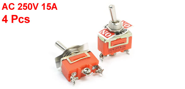 DetailsSpare Parts AC 250V 15A ON/OFF/ON 3 Positions 3 Pin Toggle Switch E-TEN1122 4pcs  Product Name Toggle Switch Model E-TEN1122 Type SPDT (Latching) Position 3 Positions (ON/OFF/ON) Voltage, Current AC 250V 15A Mounting Thread Diameter 11 mm / 0.43" Main Body Size 2.8 x 1.3 x 1.8 cm / 1.1" x 0.5" x 0.7" (L*W*H) Overall Height 5.5cm / 2.2" Net Weight 90g Package Content 4 x Toggle Switch
