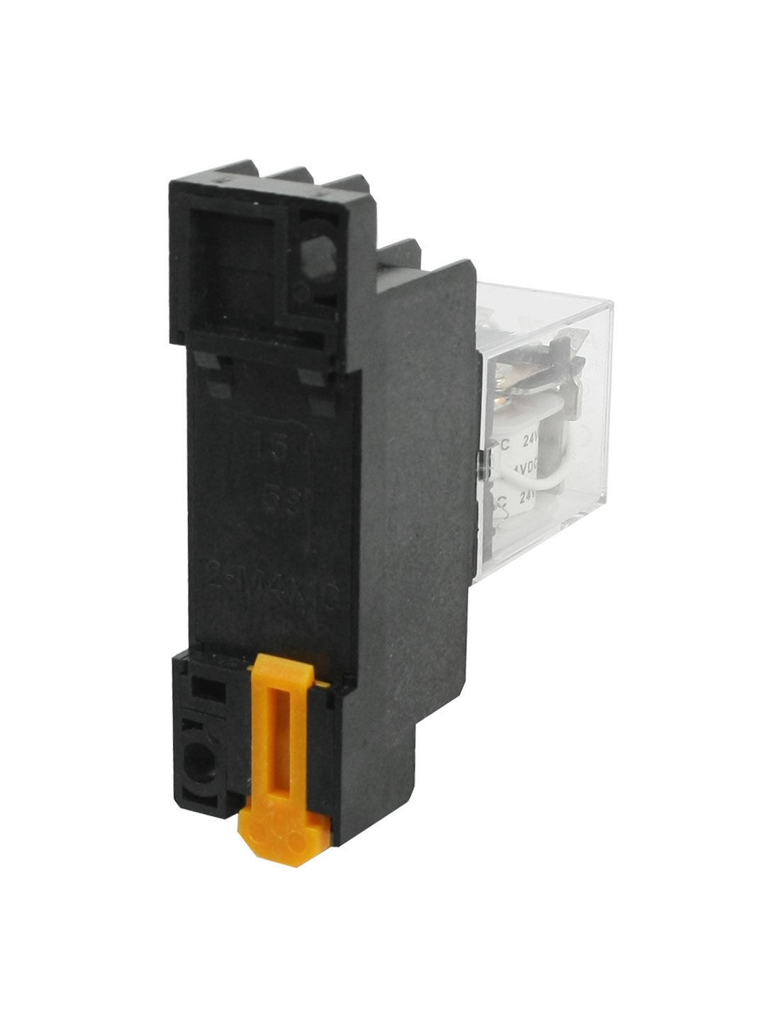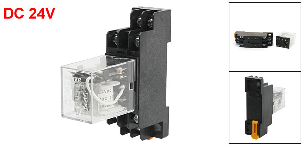 DetailsSpare Parts HH52P DC 24V 2NO 2NC General Purpose Power Relay w Base Socket  Product Name Electromagnetic Relay w Socket Relay Model No. HH52P Socket Model PYF08A Coil Voltage DC 24V Contact Capacity 5A 240VAC /5A 28VDC Type DPDT, 2NO 2NC Pin Quantities 8 Mount Rail Type 35mm DIN Rail Fixing Mount Hole Dia 4mm/0.16" Overall Size (Approx.) 75 x 22 x 65mm/3" x 0.87" x 2.6"(L*W*H) Shell Material Plastic Main Color Clear, Black Net Weight 60g Package Content 1 x Electromagnetic Relay w Socket