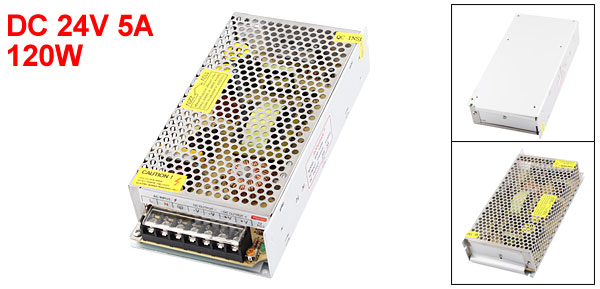 Product Name Switching Power Supply Model No. SPD-120W Input AC 100-220V 50/60Hz Output DC 24V, 5A Power 120W Terminal Quantity 7 Total Size 20 x 9.8 x 4cm / 8" x 3.8" x 1.6" (L*W*T) Case Material Metal Main Color Silver Tone Net Weight 468g Package Content 1 x Switching Power Supply - Reviews