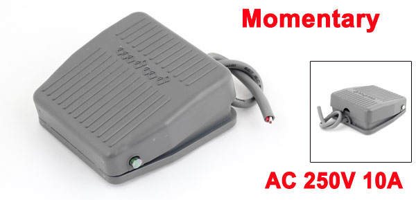 Product Name Foot Switch Model VFS-201 Type Momentary Contact Contact Type SPDT (NO NC) Voltage AC 250V 10A Size 83 x 80 x 37mm / 3.3" x 3.1" x 1.5" (L x W x T) Cable Length 17cm/6.7" Material Plastic, Metal, Electric Part Color Gray Weight 152g Package Content 1 x Foot Switch - Reviews