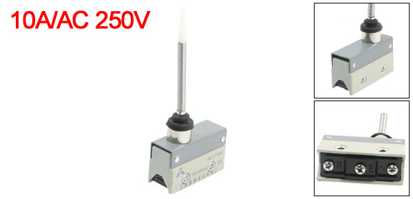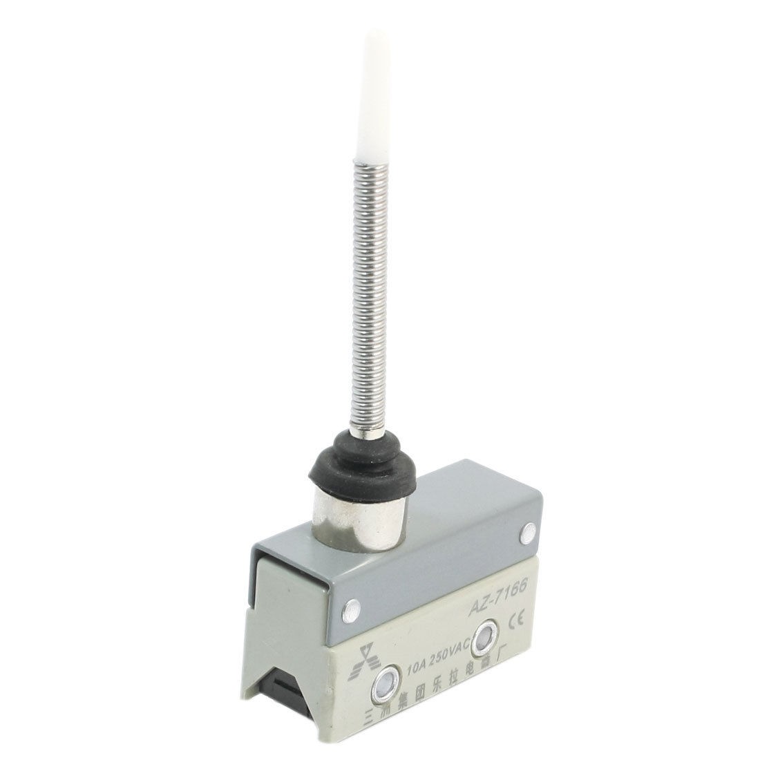 Product Name Limit Switch Model No. AZ-7166 Actuator Action Momentary Actuator Type Wobble Stick Contact Type NO + NC(SPDT) Terminal Type Screw Terminals Voltage 10A/AC 250V Actuator Lever Size 65 x 6mm/2.6" x 0.24"(L*D) Mounting Hole Dia 5mm/0.2" Mounting Hole Distance 27mm/ 1.1" Body Size 55 x 20 x 30mm/2.2" x 0.8" x 1.2"(L*W*H) Total Length 11.5cm/4.5" Material Metal & Rubber Weight 70g Package Content 1 x Limit Switches - Reviews