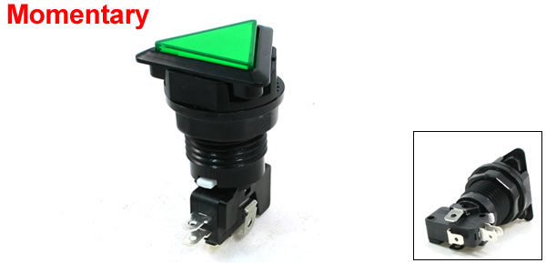 SPDT 5 Pin Momentary Action Arcade Game Green Triangle Cap Push Button