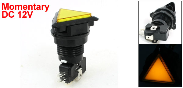 SPDT 5P Momentary Arcade Game Yellow Triangle Illuminated Push Button