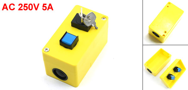 Product Name Push Button Station Action Type Rotay Switch And Latching Blue Push Button Switch Working Voltage & Current 5A 250VAC Contact Type SPDT 1NO 1NC Rotary Switch Position 2 Selector Position Rotary Switch Size 2.5 x 1.8cm/1" x 0.7"(L*W)