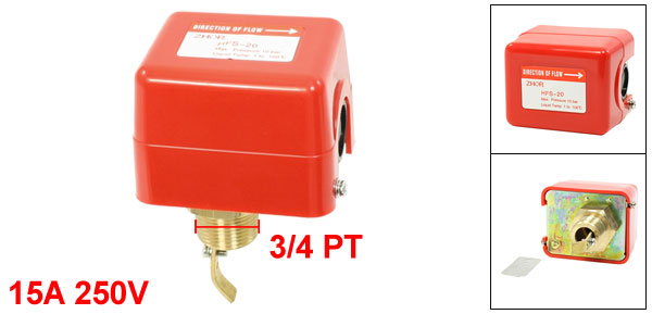 Product Name Pressure Switch Model NO. HFS-20 Max. Pressure 10Bar Contact Type SPDT Rating 15A 250V Liquid Temperature Range 1 to 100°C Thread Diameter 26mm Thread Size G3/4 Overall Size 12 x 8.5 x 6.5cm/ 4.7" x 3.35" x 2.6"(L*W*H) Color Red, Gold Tone Material Metal Net Weight 370g Package 1 x Pressure Switch