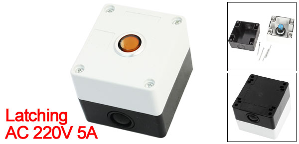 Product Name Push Button Station Action Type Latching Type Ith 5A Rating AC 220V 5A Contact Type SPDT (1 NO 1 NC) Hole Diameter 22mm/ 0.87" Button Dia 15mm/0.6" Box Size 78 x 72 x 64mm/ 3.1" x 2.8" x 2.5" (L*W*H) Switch Size 40 x 29mm/ 1.5" x 1.2" x 2.5"(H*Max.D) Mounting Hole Diameter 5mm/ 0.2" Mounting Hole Center Distance 64 x 58mm/2.5“ x 2.3"(L*W) Button Color Orange External Material Plastic External Color Black, White , Green Net Weight 109g Total Weight 122g Package Content 1 x Push Button Station