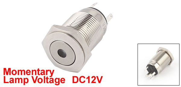 Item Name Push Button Switch Action Type Momentary Contact Type SPDT(1NO, 1NC) Lamp Voltage DC12V Lamp Color Blue Button Diameter 12mm / 0.47" Pins Number 5 Thread Diameter 16mm / 0.63" Total Size 33 x 19mm / 1.3" x 0.75"(L*Max.L) Material Stainless Steel Weight 18g Package Content 1 x Push Button Switch - Reviews