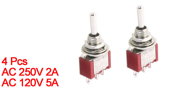 AC 120V 5AMounting Thread Diameter 5 mm / 0.2" Main Body Size 1.2 x 0.6 x 1 cm / 0.47" x 0.24" x 0.4" (L*W*H) Overall Height 3cm / 1.2" Color Red Silver Tone Net Weight 20g Package Content 4 x Toggle Switch - Reviews