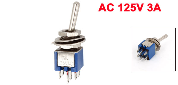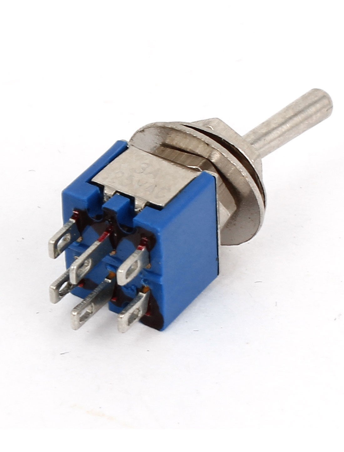 Action Type Latching Pin Number 6 Pins Position 2 Positions (ON/ON) Type DPDT Thread Diameter 5mm / 0.2" Body Size (Approx.) 10 x 8 x 7mm / 0.4" x 0.31" x 0.28" (L*W*T) Total Height 28mm / 1.1" Material Plastic, Metal Color Blue, Silver Tone Weight 4g Package Content 1 x Toggle Switch - Reviews