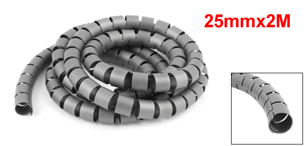 Spiral Tube Cable Wire Wrap Organizer PC Cord Management 25mmx2m Gray