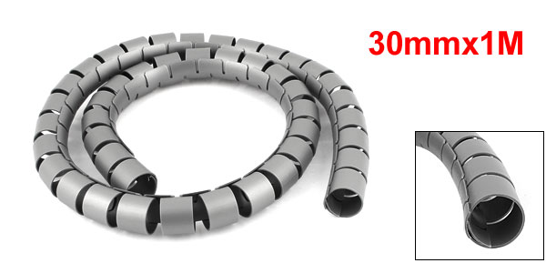Spiral Tube Cable Wire Wrap Organizer PC Cord Management 30mmx1m Gray