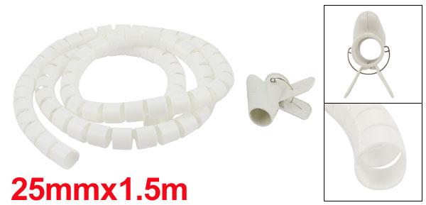 Spiral Tube Cable Wire Wrap Organizer PC Cord Management + Clip 25mmx1.5m White