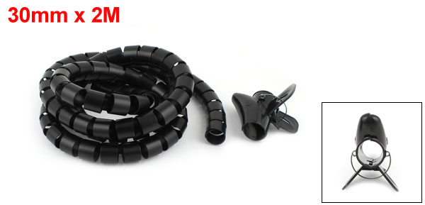 Spiral Tube Cable Wire Wrap Organizer PC Cord Management + Clip 30mmx2m Black