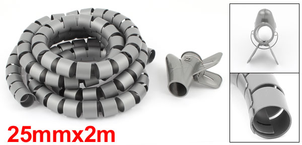 Spiral Tube Cable Wire Wrap Organizer PC Cord Management w Clip 25mmx2m Gray