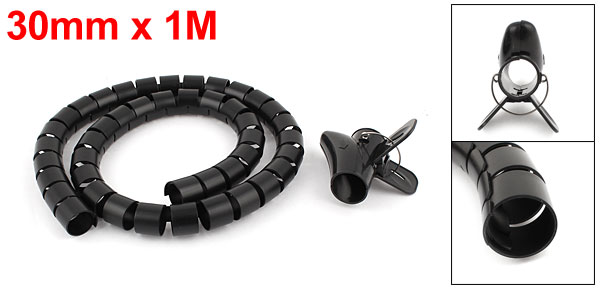 Spiral Tube Cable Wire Wrap Organizer PC Cord Management w Clip 30mmx1m Black