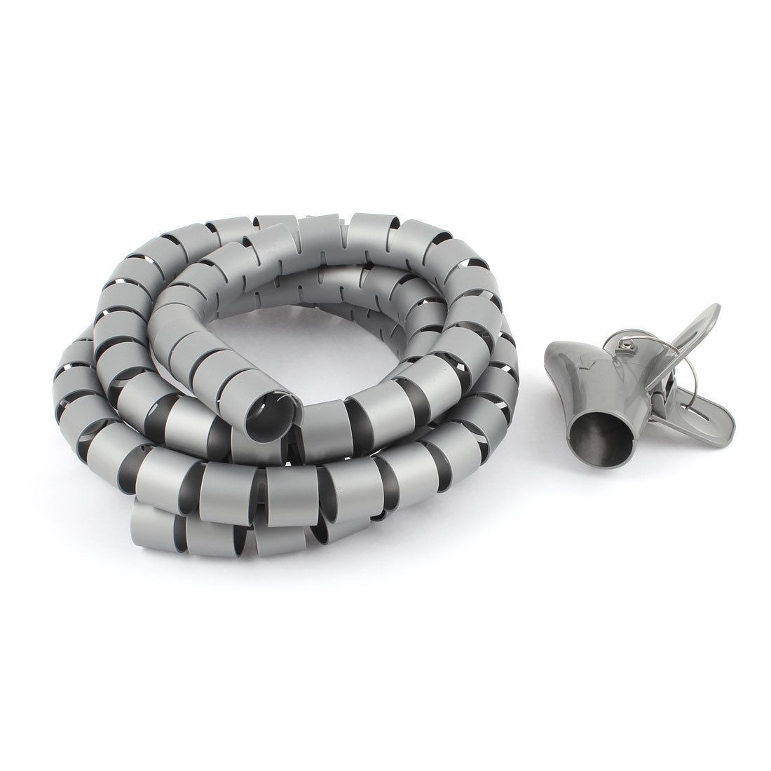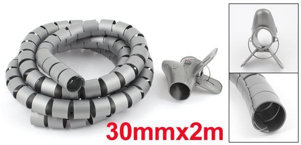 Spiral Tube Cable Wire Wrap Organizer PC Cord Management w Clip 30mmx2m Gray