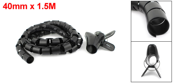 Spiral Tube Cable Wire Wrap Organizer PC Cord Management w Clip 40mmx1.5m Black
