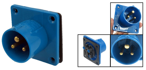 Splash Proof 2P+E IEC309-2 Panel Mount Plug AC 220-250V 16A w Washer