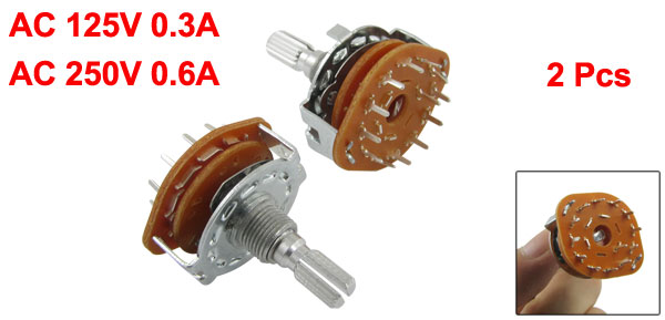 Split Shaft AC 125V 0.3A 250V 0.6A 1 Pole 12 Positions Rotary Switch (Bag of 2)