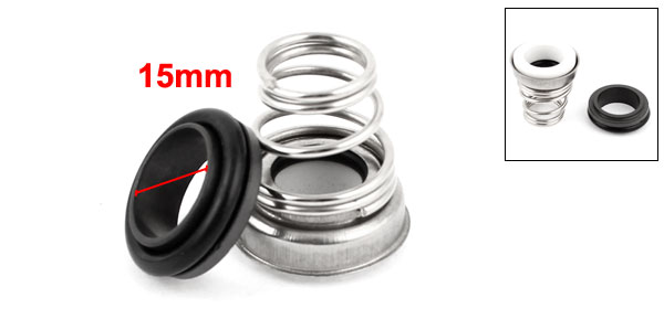 Product Name Mechanical Seal Internal Diameter 15mm / 0.6" Rubber Bellows Ring Size 27 x 9mm / 1.1" x 0.35"(OD*T) Overall Size 40 x 29mm / 1.6'' x 1.1"(Max.D*H) Material Rubber, Metal, Ceramic Color Black, Silver Tone, White Net Weight 22g Package Content 1 x Mechanical Seal - Reviews