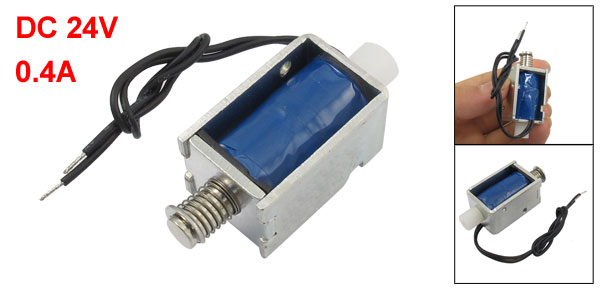 Product Name Solenoid Electromagnet Material Metal, Electronic Parts Rated Voltage DC 24V Rated Current 0.4A Type Push Force& Stroke 5mm, 50GF