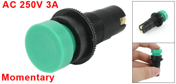 SPST 1NO 1NC 2 Terminal Green Black Momentary Push Button Switch AC 250V 3A