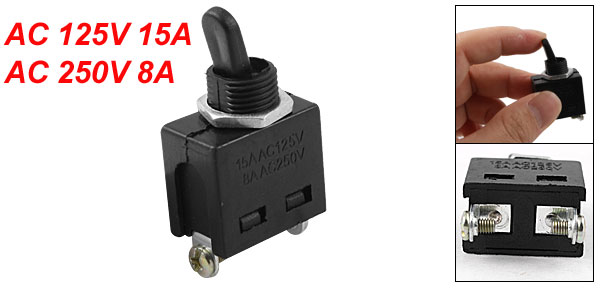 Product Name Toggle Switch Model No. STE115A12 Position Type SPST Technical Parameter AC 125V 15A, AC 250V 8A Screw Thread Dia 10mm Size 2.2 x 1.3 x 4.3cm/ 0.9" x 0.5" x 1.7" (L*W*H) Material Plastic, Metal Color Black Weight 11g Package 1 x Toggle Switch - Reviews