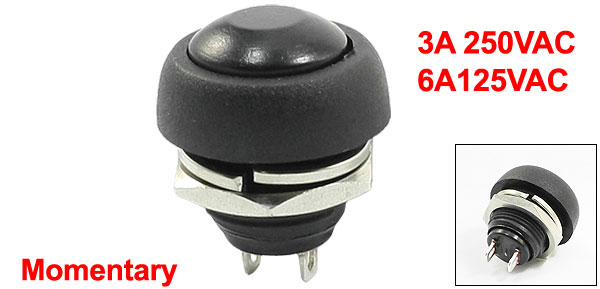 Item Name Push Button Switch Action Type Momentary Contact Type NO Poles SPST Rating Voltage 3A 250VAC 6A125VAC Terminals 2 Pin Thread Dia 12mm / 0.47" Cap Dia. 12mm / 0.47" Pin Pitch 4.6mm / 0.18" Total Size 20 x 17.5mm / 0.78" x 0.7" (Max. L * D) Material Plastic and Metal Weight 4g Package Content 1 x Push Button Switch - Reviews
