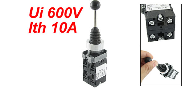 Product Name Joystick Switch Model No. XD2PA14 Contact 4 NO Ui 600V Ith 10A Uimp 6kV Voltage & Current 240V, 3A Mount Hole Dia 2.9cm / 1.1" Lever Length 6.7cm / 2.6" Main Body Size 2.9 x 3cm / 1.1" x 1.2"(L*W) Overall Size (Approx.) 4 x 2.96 x 14.5cm / 1.57" x 1.16" x 5.7" (L*W*H)