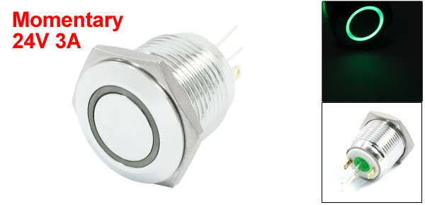 SPST Momentary Green LED Light Ring Illuminate Push Button Switch 24V 3A