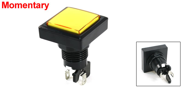 SPST Momentary Yellow Square Head Push Button Switch for Game Machine