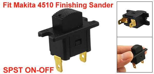 Product Name Electric Tool Switch Fit for Makita 4510 Finishing Sander Action Type SPST ON-OFF Size 3 x 1.3 x 3cm / 1.2'' x 0.5'' x 1.2'' (L*W*H) Material Plastic, Metal Main Color Black Weight 6g Package 1 x Electric Tool Switch - Reviews