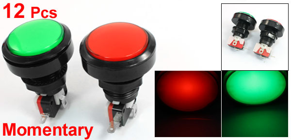 SPST Red Green Indicator Momentary Game Machine Arcade Button Micro Switch 12Pcs