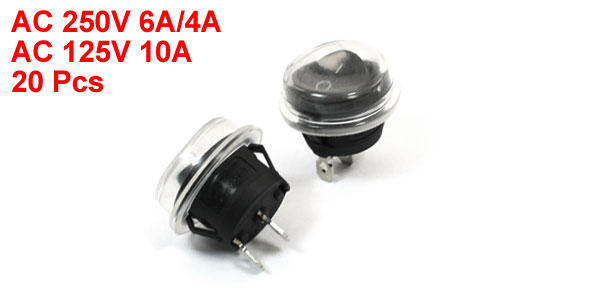 SPST Waterproof 2Pin Solder Snap in Rocker Switch 6A/4A 250VAC 10A 125VAC 20 Pcs