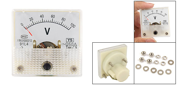 Product Name Analog Voltmeter Model 91L4 Measuring Range AC 0-100V Meter Face Size(Approx) 4.4 x 4.4 x 0.8cm/1.7" x 1.7" x 0.3"(L*W*T) Thread Diameter 2.7mm/0.1" Overall Depth 3.5cm/1.37" Color As Picture Show Net Weight 40g Package Content 1 x Mini Analog Voltmeter
