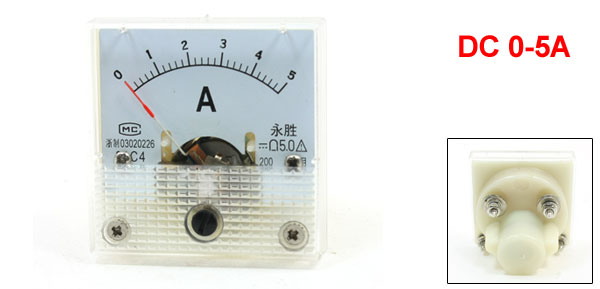 Product Name Analog Ammeter Model 91C4 Measuring Current Range DC 0-5A Accuracy Class 5 Total Size 4.5 x 4.5 x 3.8cm/1.8" x 1.8" x 1.5"(L*W*T) Thread Dia. 3mm/0.12" Color Clear, White, Black Weight 45g Package Content 1 x Analog Ammeter